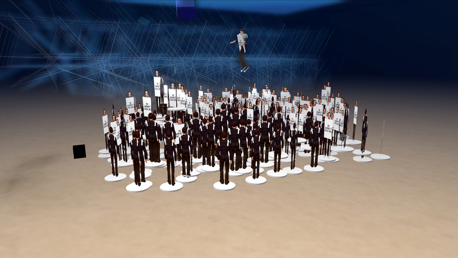The performance was part of an ongoing series of works on identity and place in the ‘virtual’ space of Second Life.
